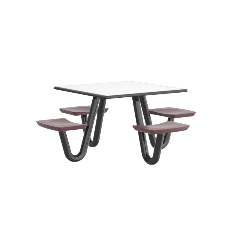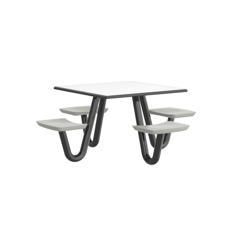 This heavy-duty table is perfect for continuous use in any dining or social environment. The rounded edges amplify both comfort and safety for each user. For ADA compliance, the table can be manufactured with one less leg to create the necessary space.