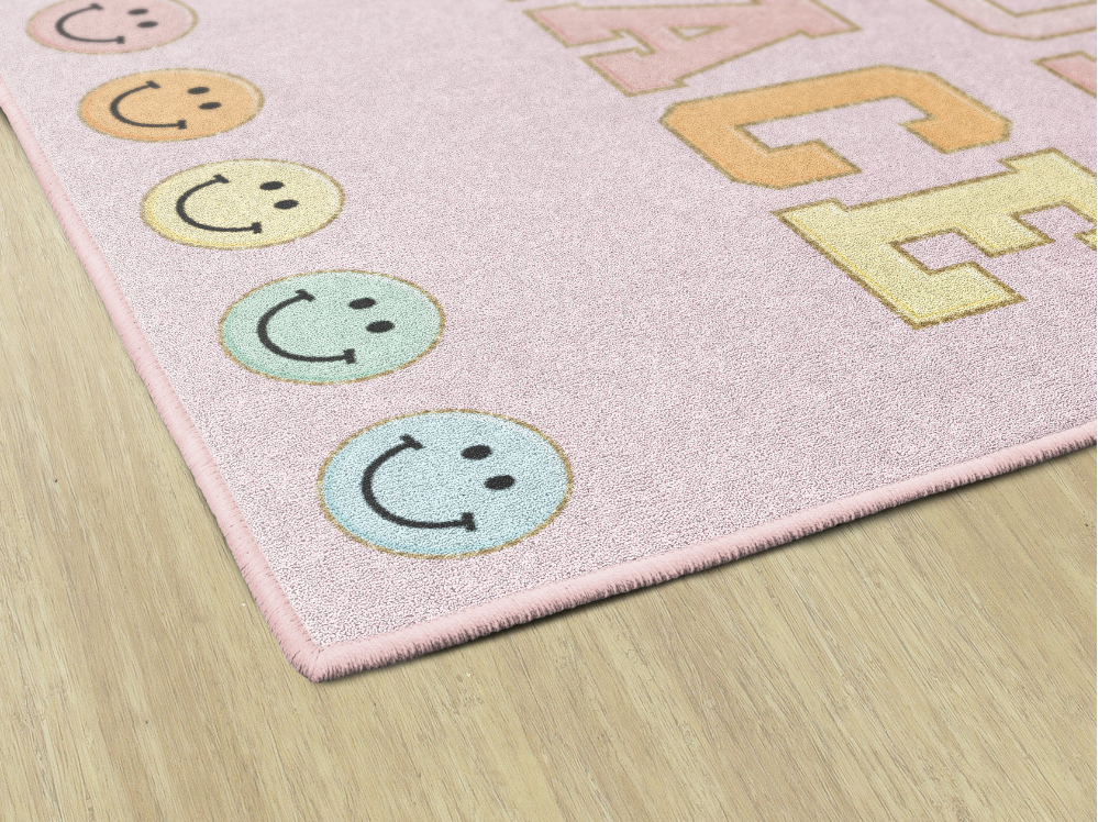 An amazing pastel color palette paired with the sweet phrase on a pretty pink background makes this rug a beautiful additional to any learning environment!