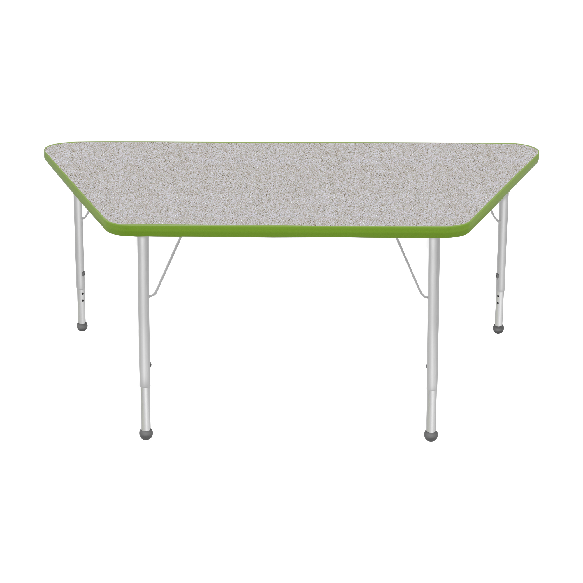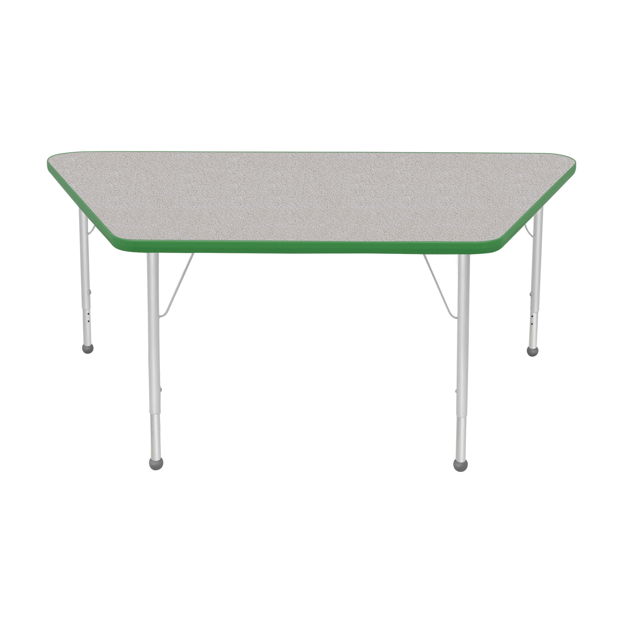 An attractively designed ECO-certified activity table focused on safety and durability. For a stain-resistant and easy to clean surface that is hard enough to resist chips and dings, the table top and bottom both feature a durable thermally fused laminate. The top is also finished with a wrap-around T-mold edge. Height-adjustable legs include a powder-coat finish on the upper legs and inserts. Platinum silver ball glides come standard as feet.