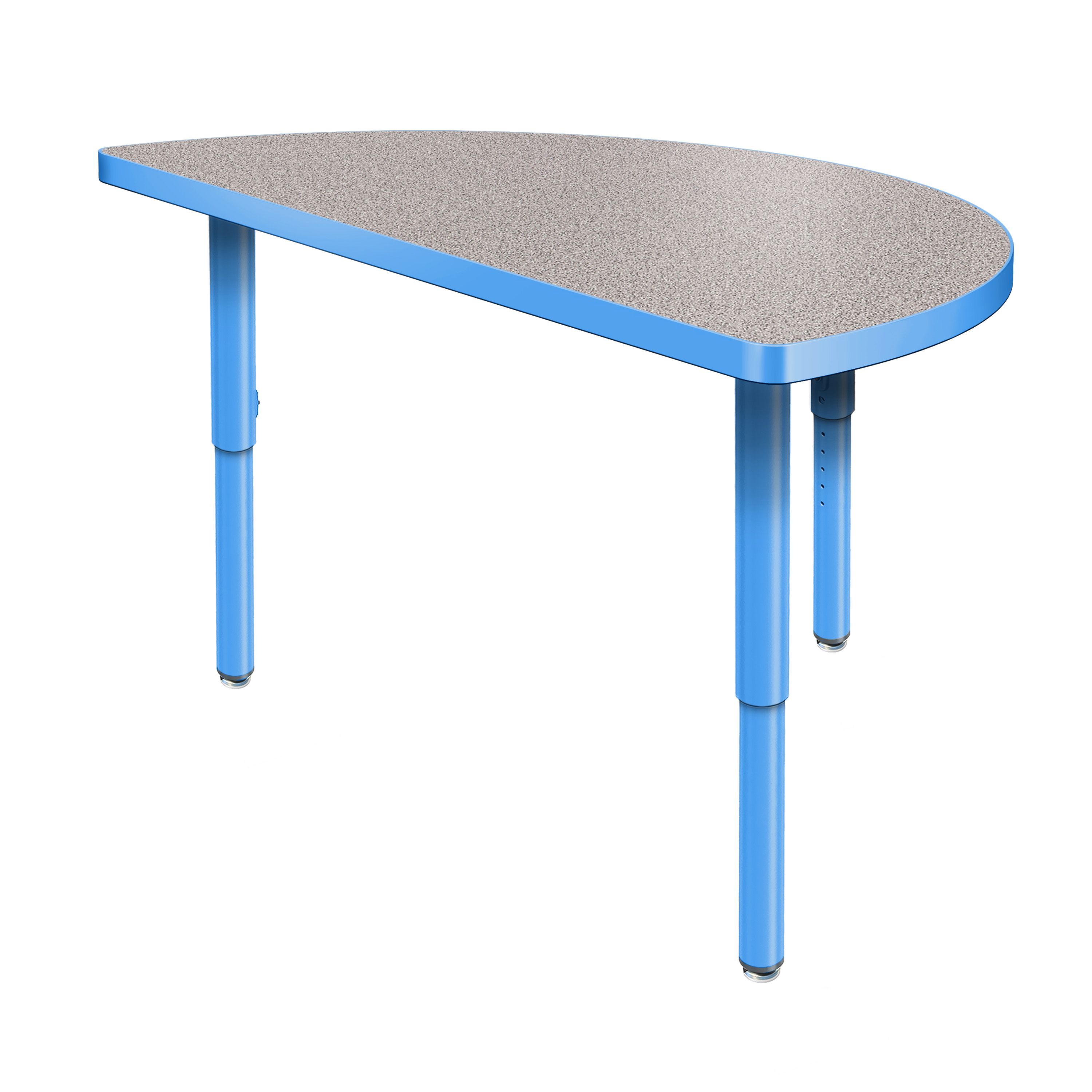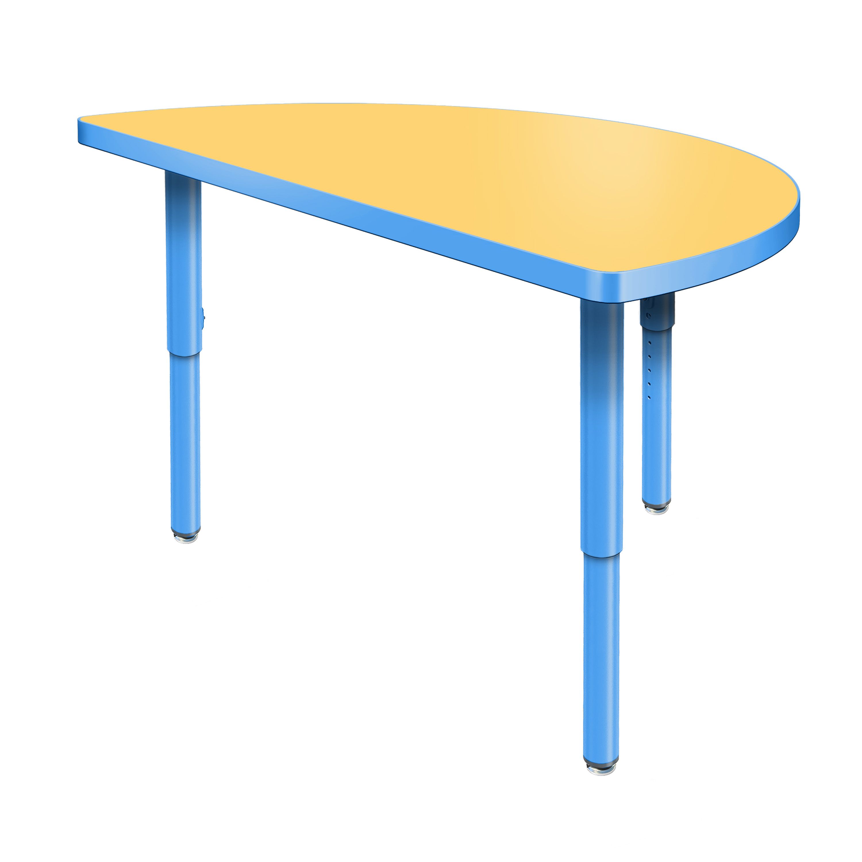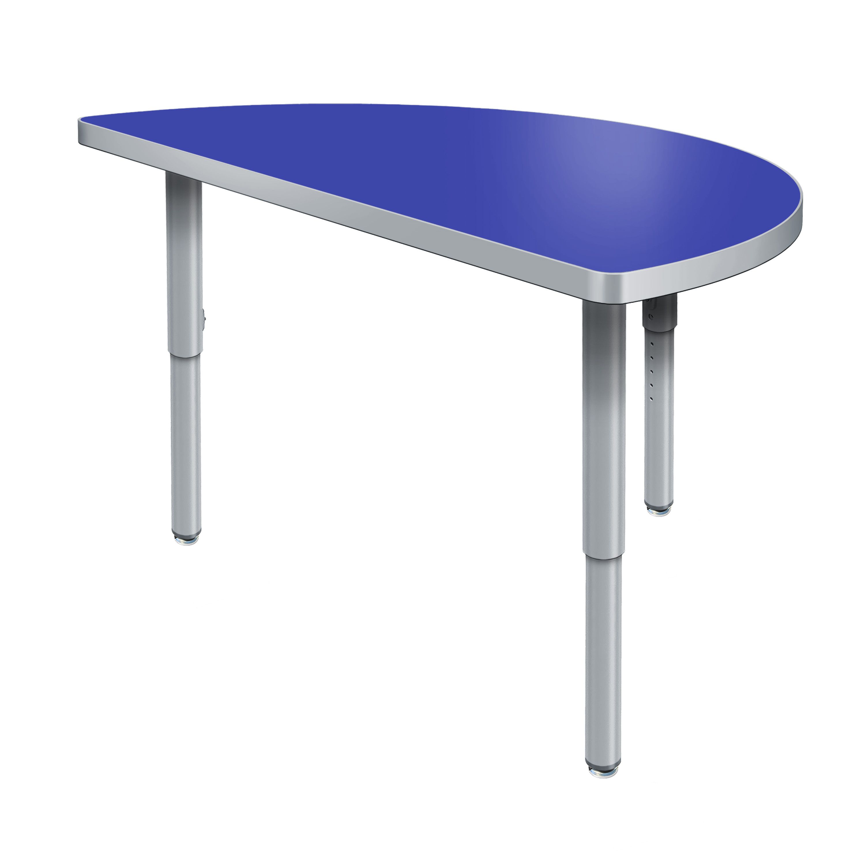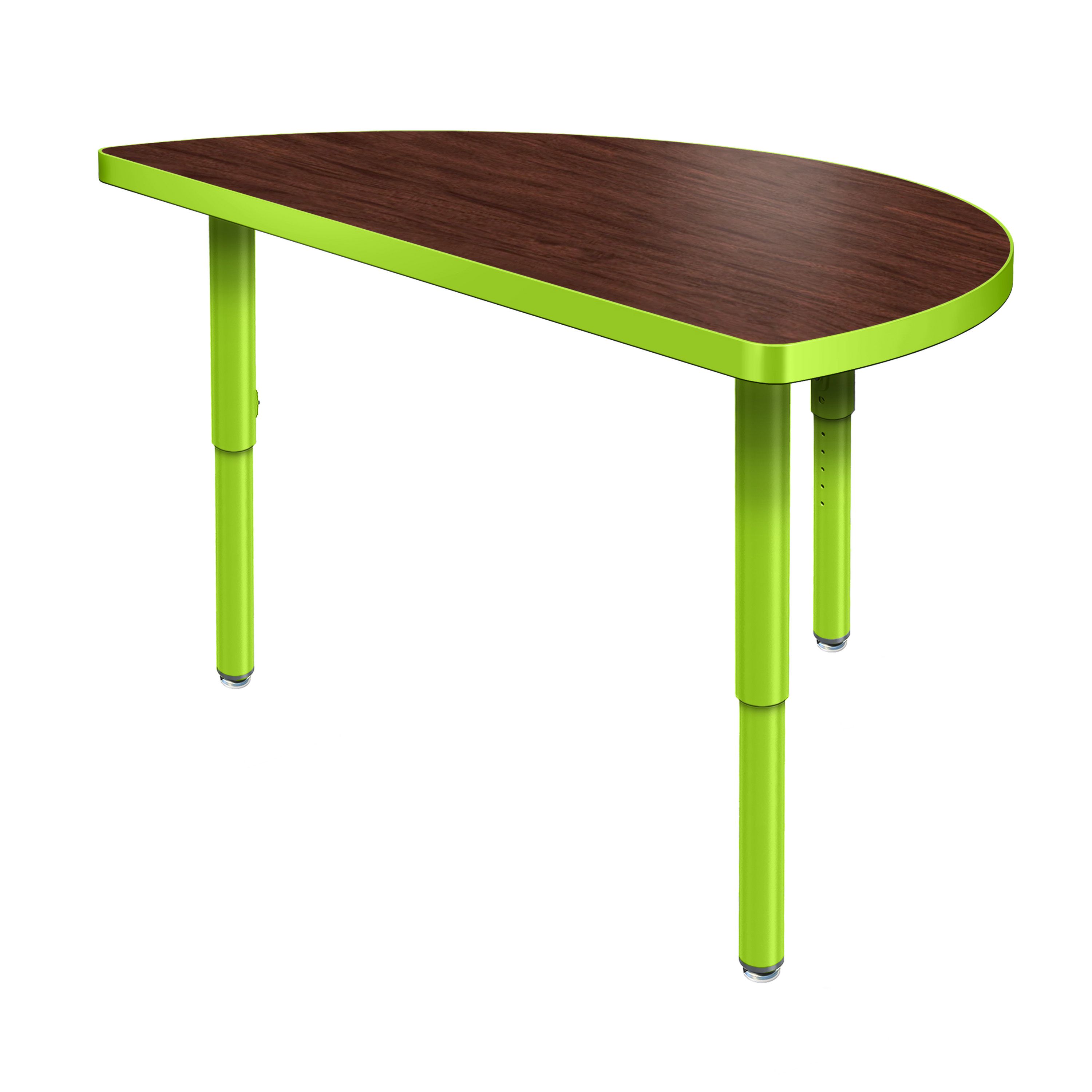 Create a modern brainstorming station in any space! The Velocity Half Round Shaped Activity Table combines stylish contemporary design with durable functionality for a versatile classroom table. The high pressure laminate top is easy to clean and maintain. The classic half round shape naturally brings people together, fostering spontaneous thinking, open conversation, and creative exchange. Two units can be pushed together to create a full circle when larger groups are needed, making this table a versatile choice for any classroom! Equipped with standard nylon swivel glides or optional locking casters, it's simple to move and rearrange these tables.