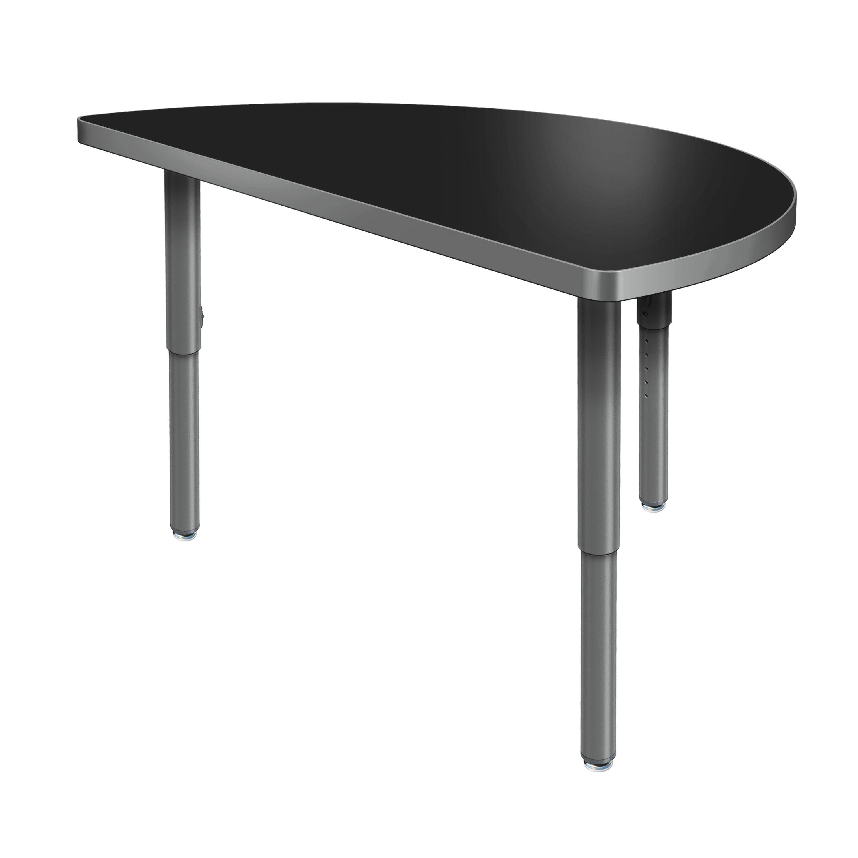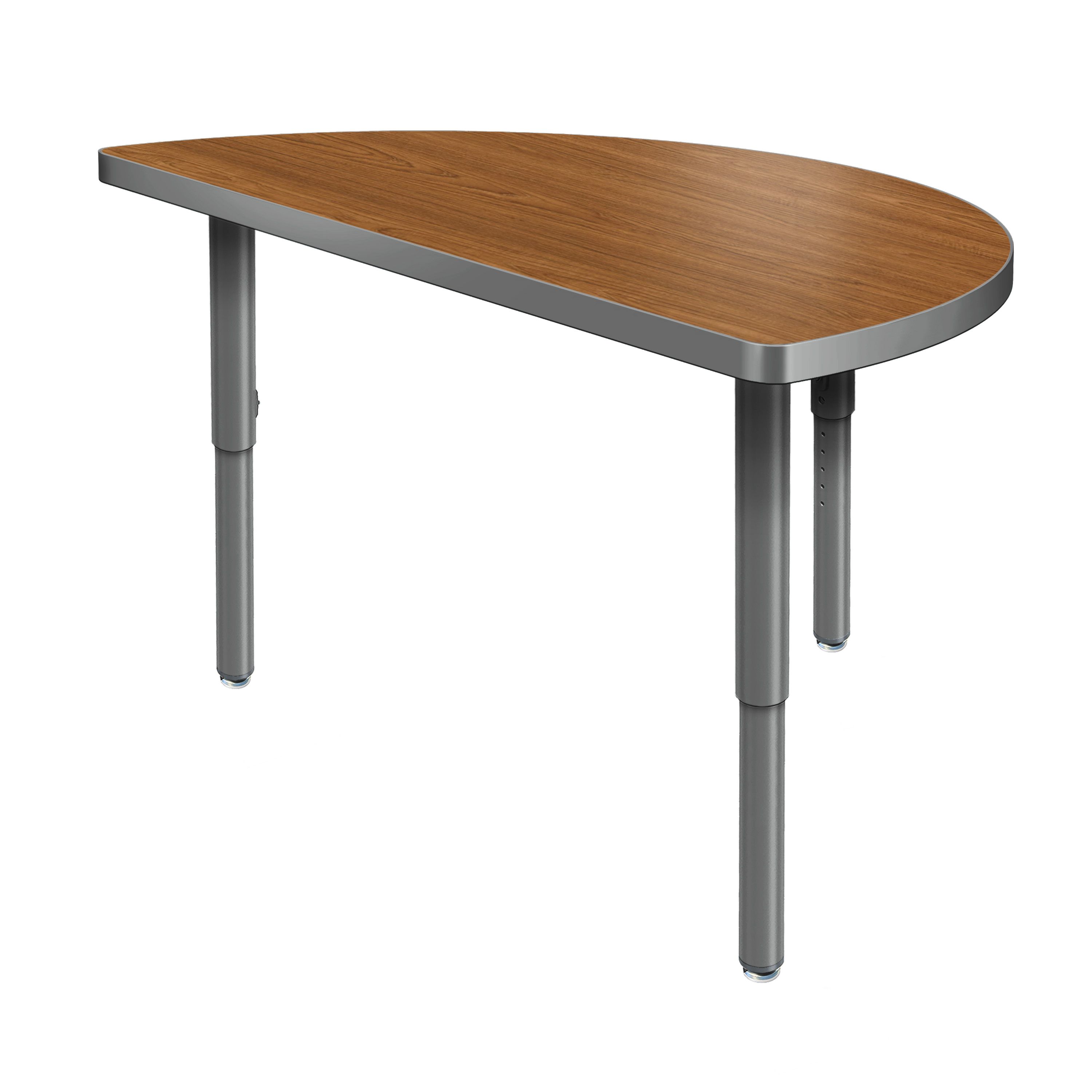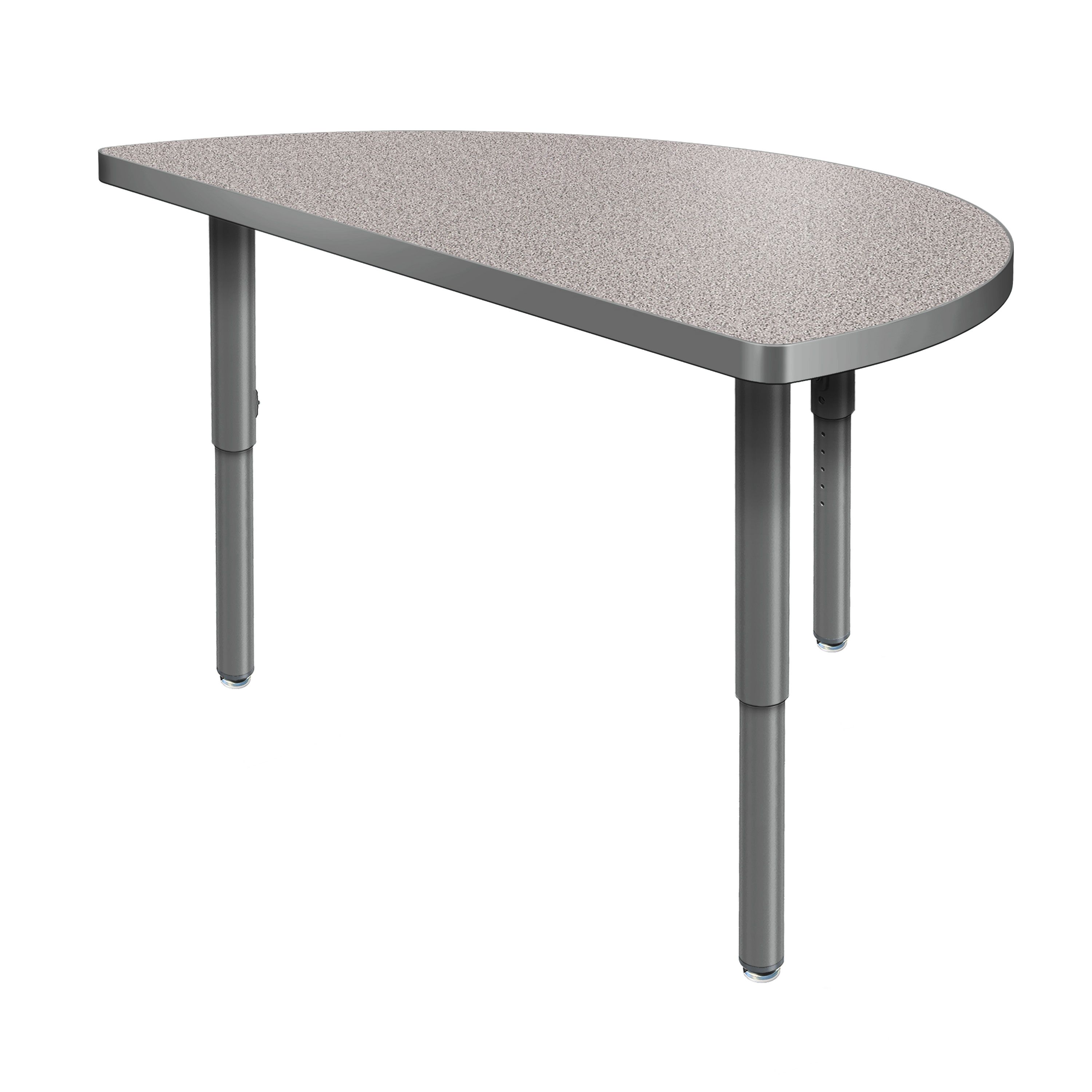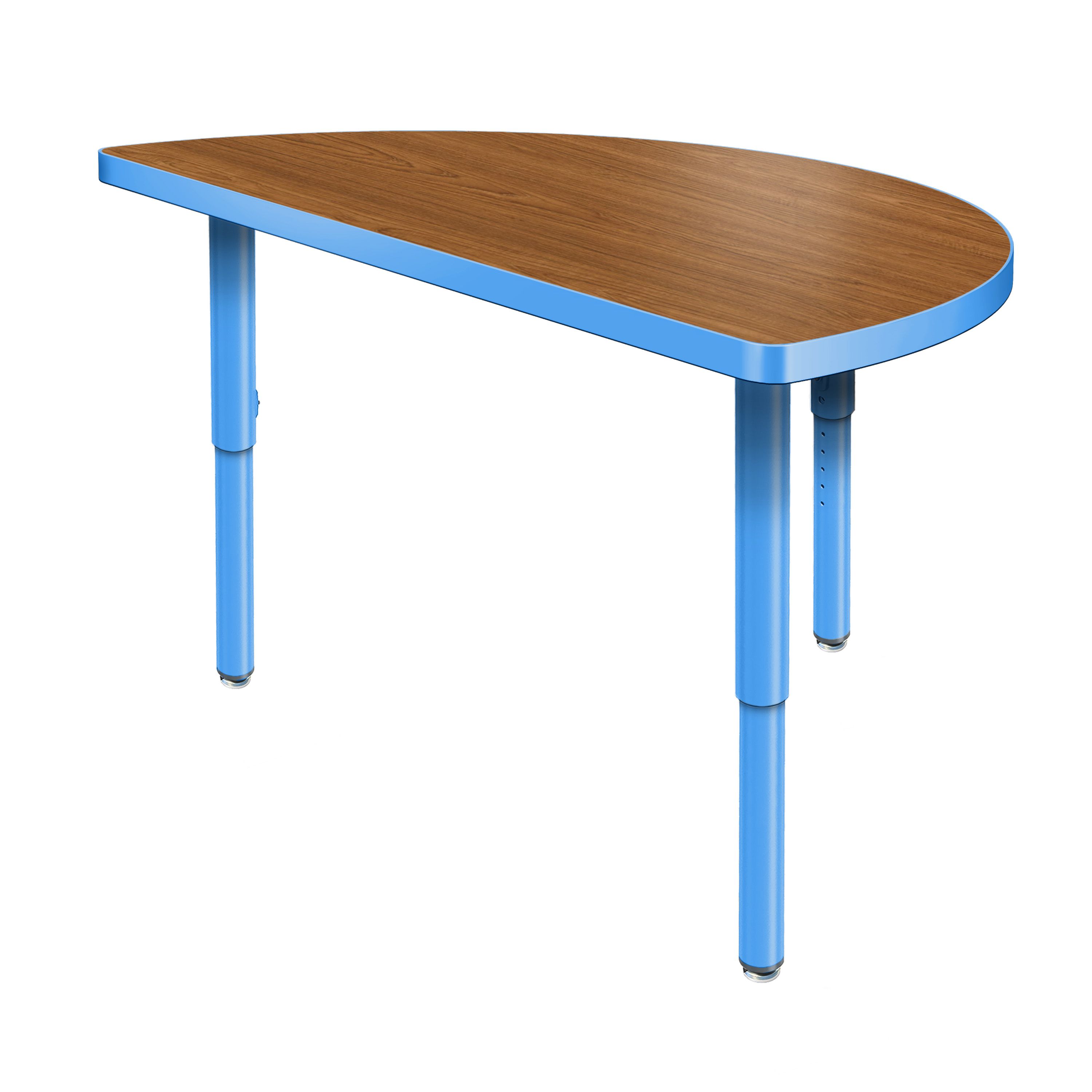 Create a modern brainstorming station in any space! The Velocity Half Round Shaped Activity Table combines stylish contemporary design with durable functionality for a versatile classroom table. The high pressure laminate top is easy to clean and maintain. The classic half round shape naturally brings people together, fostering spontaneous thinking, open conversation, and creative exchange. Two units can be pushed together to create a full circle when larger groups are needed, making this table a versatile choice for any classroom! Equipped with standard nylon swivel glides or optional locking casters, it's simple to move and rearrange these tables.