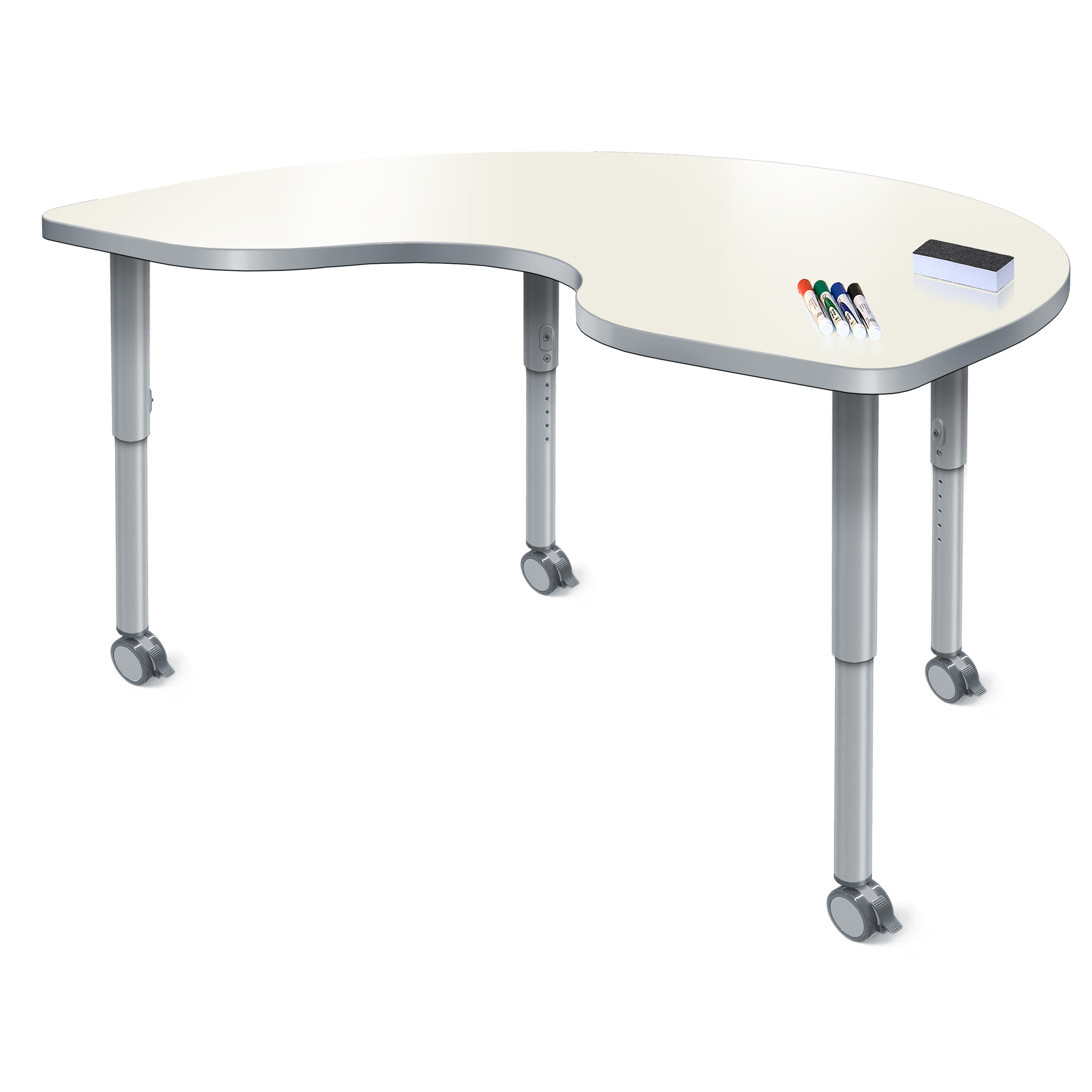 Velocity Kidney Shaped Dry Erase Table with Adjustable Height - Allied USA