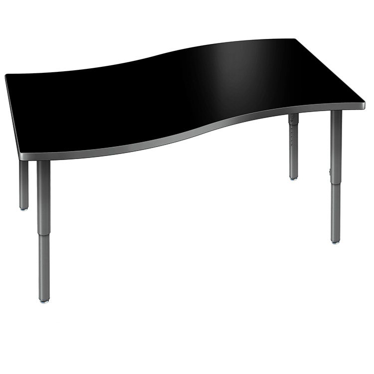 Create a modern brainstorming station in any space! The Velocity Surge Shaped Activity Table combines stylish contemporary design with durable functionality for a versatile classroom table. The high pressure laminate top is easy to clean and maintain. The wavy surge shape naturally brings people together, fostering spontaneous thinking, open conversation, and creative exchange. Equipped with standard nylon swivel glides or optional locking casters, it's simple to move and rearrange these tables.
