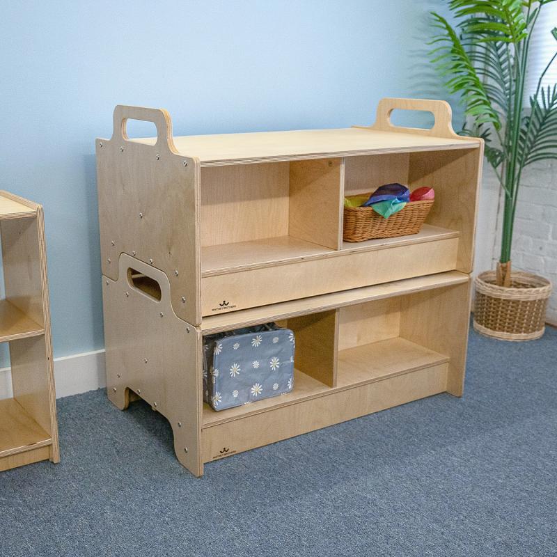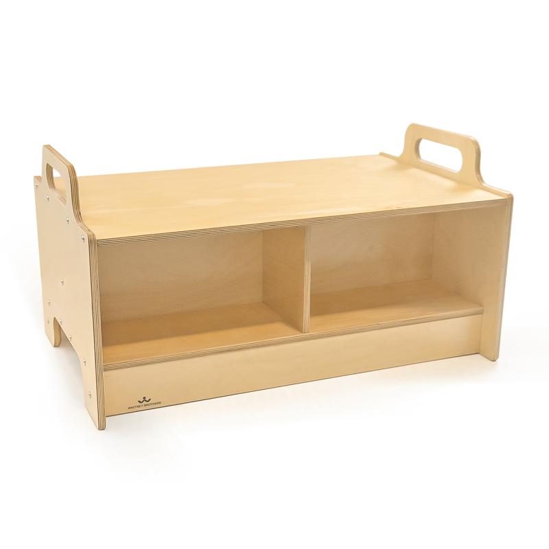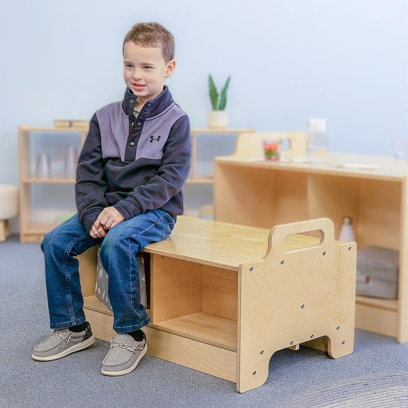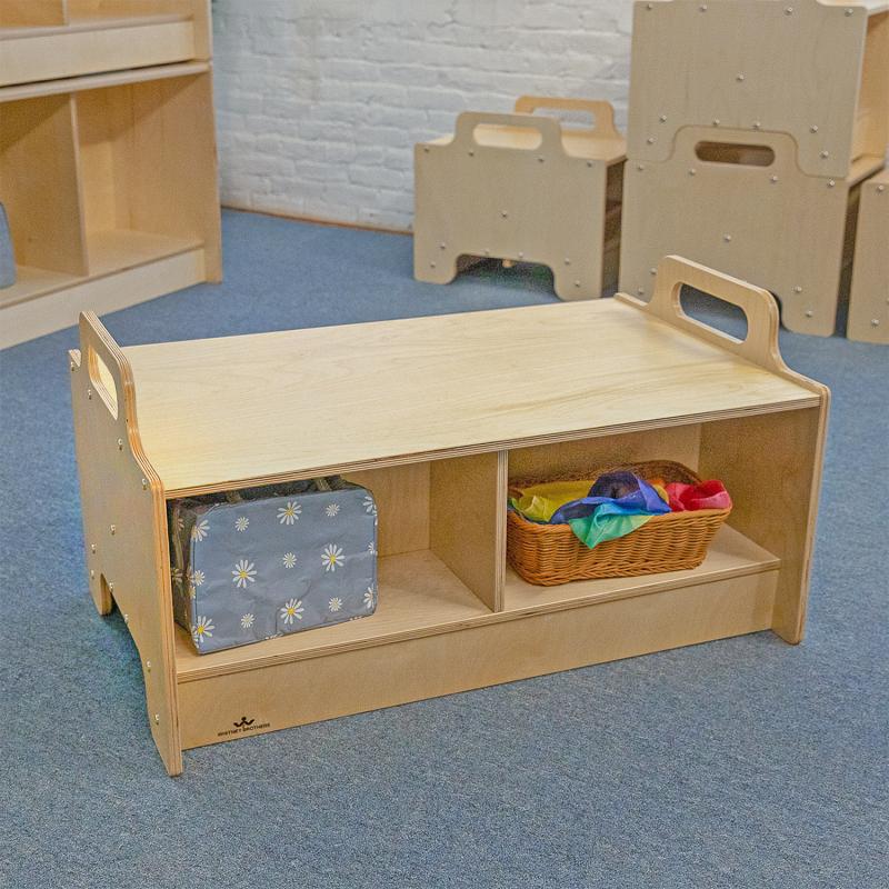 The Stack-Able™ Collection is the perfect solution when saving space is a necessity! Furniture must be flexible to accommodate an always-changing landscape in any Early Learning environment! With a unique interlocking design, two of the same unit can be stacked together securely and convert into two-sided storage for maximum utility and versatility. Hand-hold cutouts support easy repositioning making these units ideal for any classroom that values variability. Combine several stacked units to create a uniquely flexible learning environment by using the stacked combo as a wall to divide your space into different zones! The Stack-Able Bench features stable construction, 14" seat height, and open storage compartments below on each side to keep materials easily accessible for young learners. Constructed in durable birch plywood with safe, non-toxic natural UV finish that withstands rigorous use and resists yellowing. Pair with the Stack-Able Table or Stack-Able Seat (each sold separately) to create an intelligently composed, multi-functional learning environment that supports flexible learning and optimizes space management.